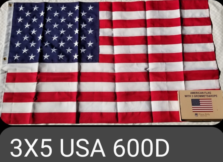American 3x5 Feet Flags Sale 100% Rough Tex 600D 2Ply Polyester Heavy Duty USA Flags 3 Grommets Rope Canvas Header Gift Boxed
