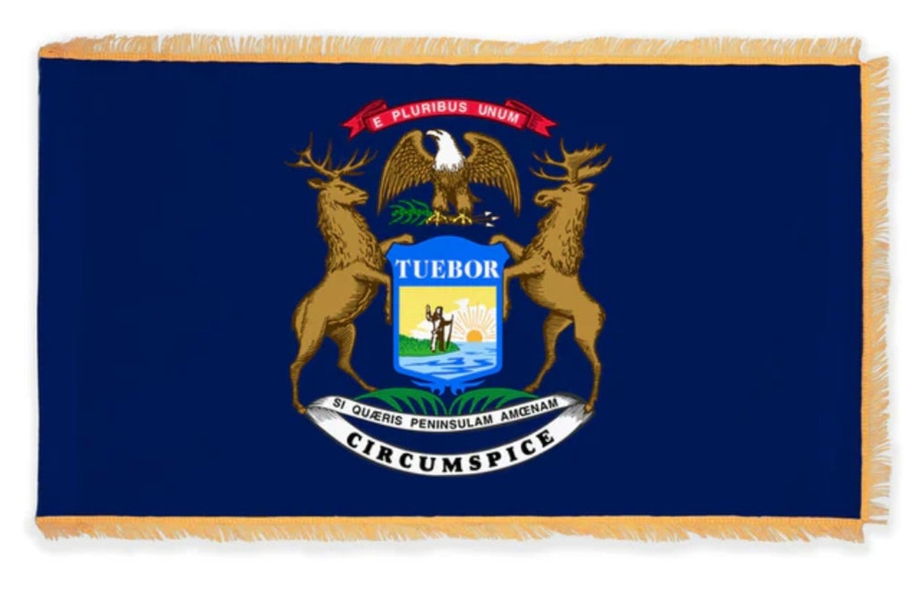 Michigan state flag is for reference only.