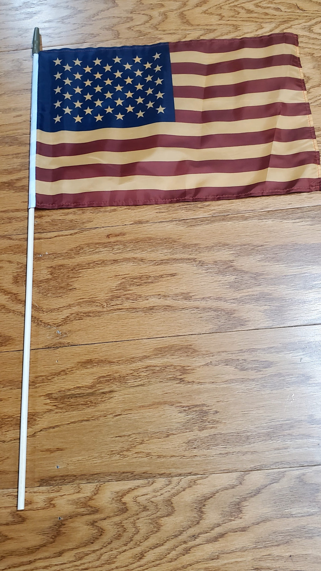 In honor of America's 250th Anniversary Since 1776.  Light Tea Stained USA 50 stars stick flags 12"x18" natural wooden staff
