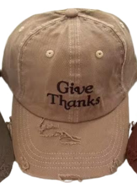 Give Thanks Weathered Embroidered Cap