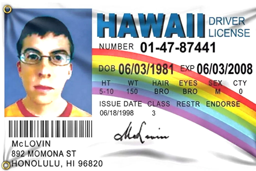 McLovin Hawaii Fake ID Drivers License Flags 68D College Banner 3x5 Feet
