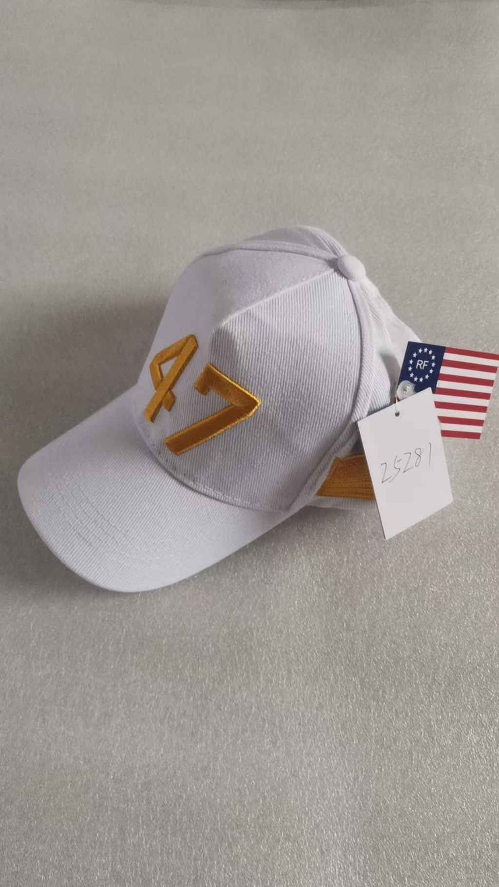 47 Trump White & Gold Embroidered White Cap Charlie Kirk Favorite