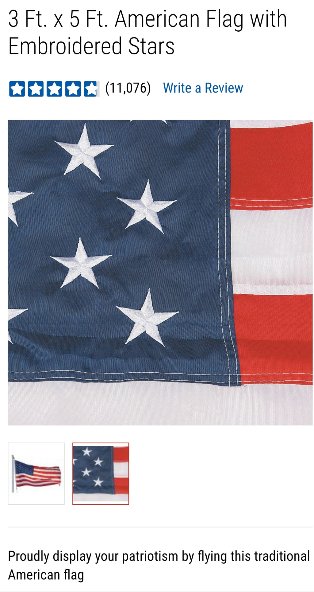 American flag 3' x 5' feet U.S.A. 50 stars nylon embroidered brass grommets
